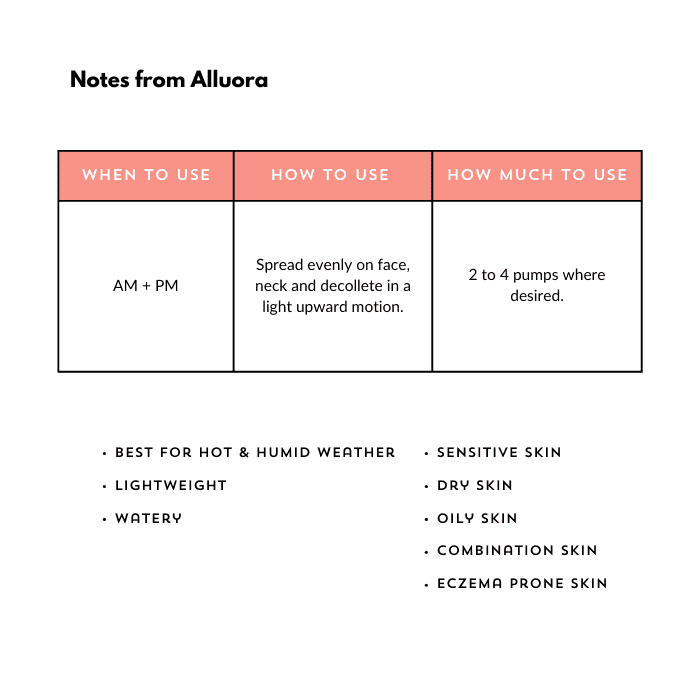 Apply Alluora BEYOUTH Treatment Moisturiser after using serums from Alluora. Pump 2-4 drops of the Alluora BEYOUTH Treatment Moisturiser on the fingertips and spread evenly across the face, neck and décolleté area. Gently massage in an upward motion. Apply sunscreen from Alluora as part of your morning routine.