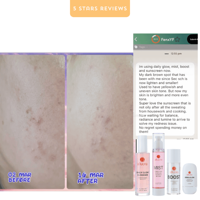 Reveal brighter, firmer, and more even-toned skin with Dew & Glow—your daily essential for protection, hydration, and luminosity!